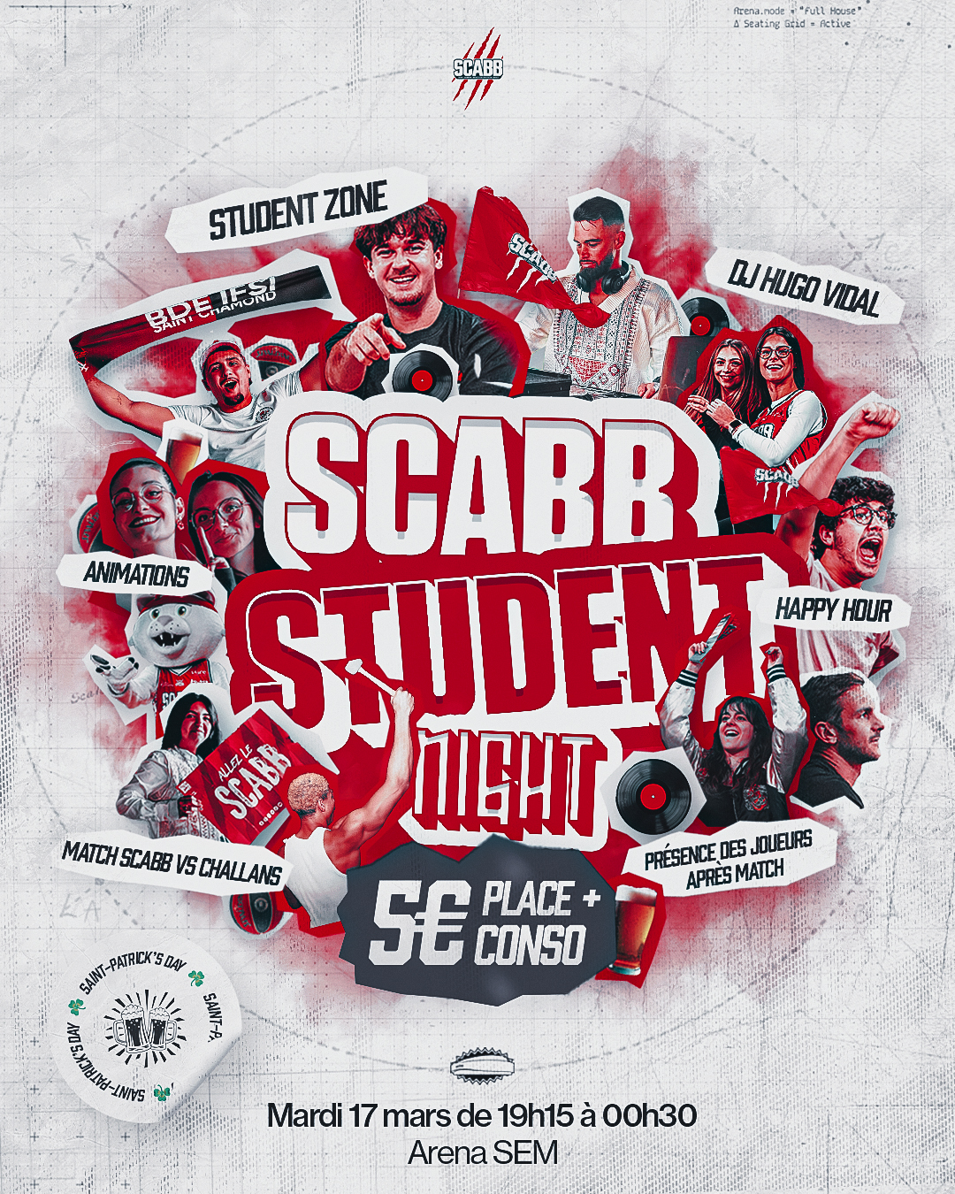 Et si on organisait une grosse soirée étudiante autour d’un match de basket ? C’est le concept de la SCABB Student Night, qui se tiendra pour sa première édition le mardi 17 mars 2026 à l’Arena SEM !